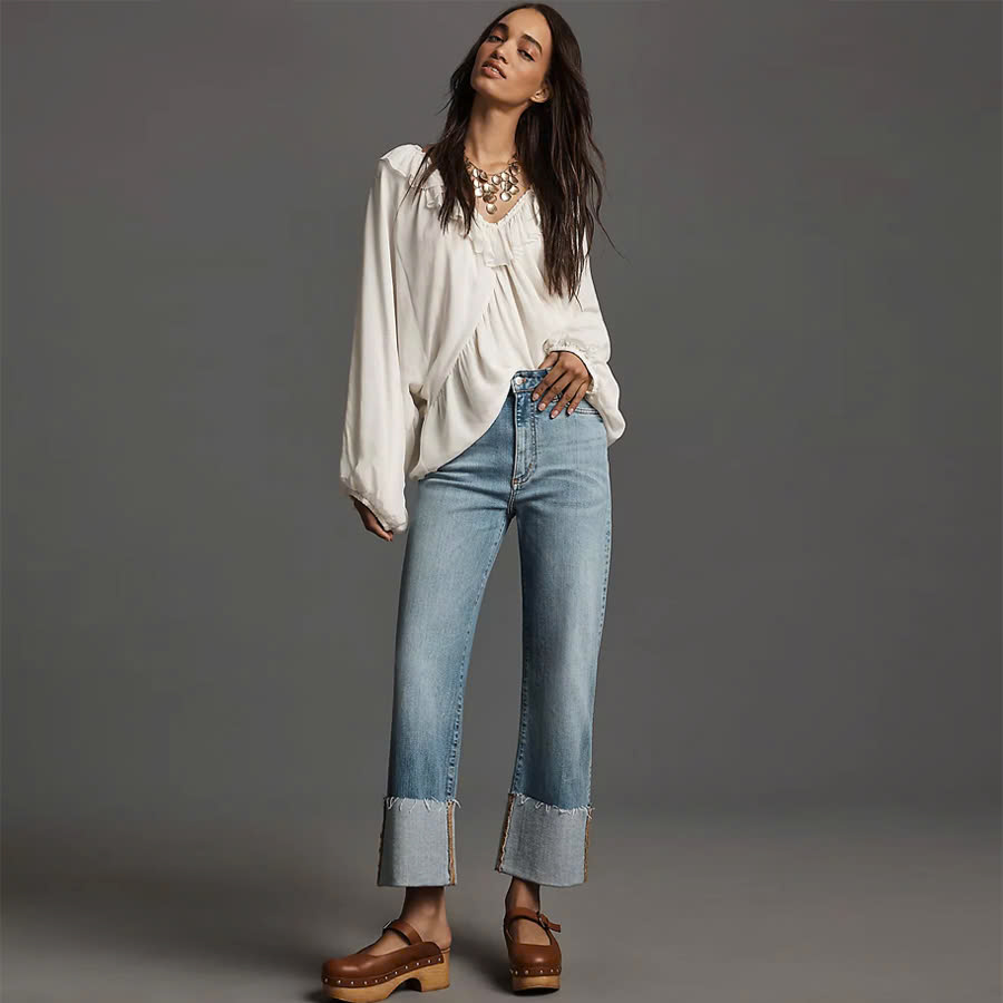 The cropped length and single cuff hem add a laid-back vibe that’s easy to love.